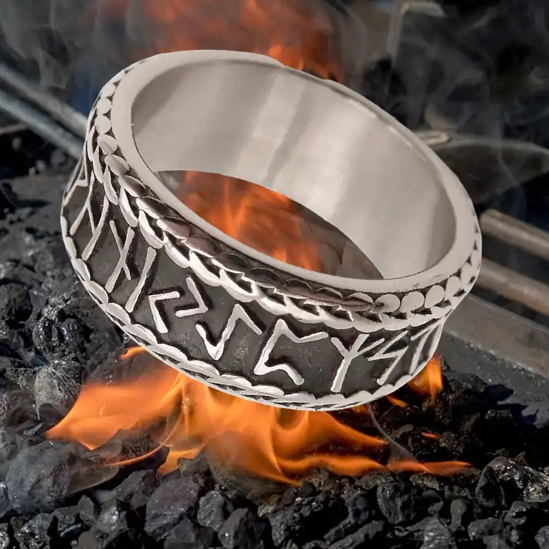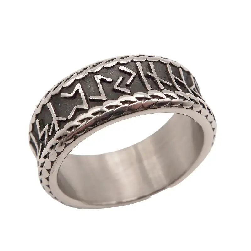 Lleva contigo la herencia de los vikingos con nuestro anillo de acero grabado con auténticas runas vikingas. Diseñado para aquellos que buscan un toque de misticismo y estilo, estos anillos fusionan la fuerza del acero con la antigua sabiduría rúnica. Un regalo ideal para los amantes de la cultura vikinga
