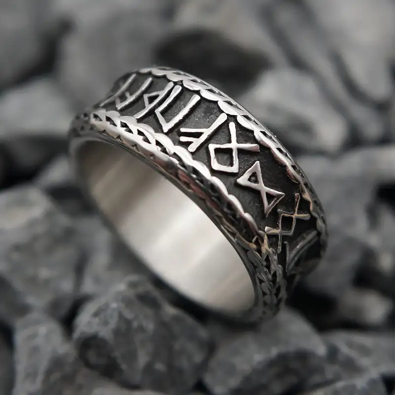 1 valoración en Anillo de Acero con Runas Vikingas grabadas: Descubre la elegancia de las runas nórdicas