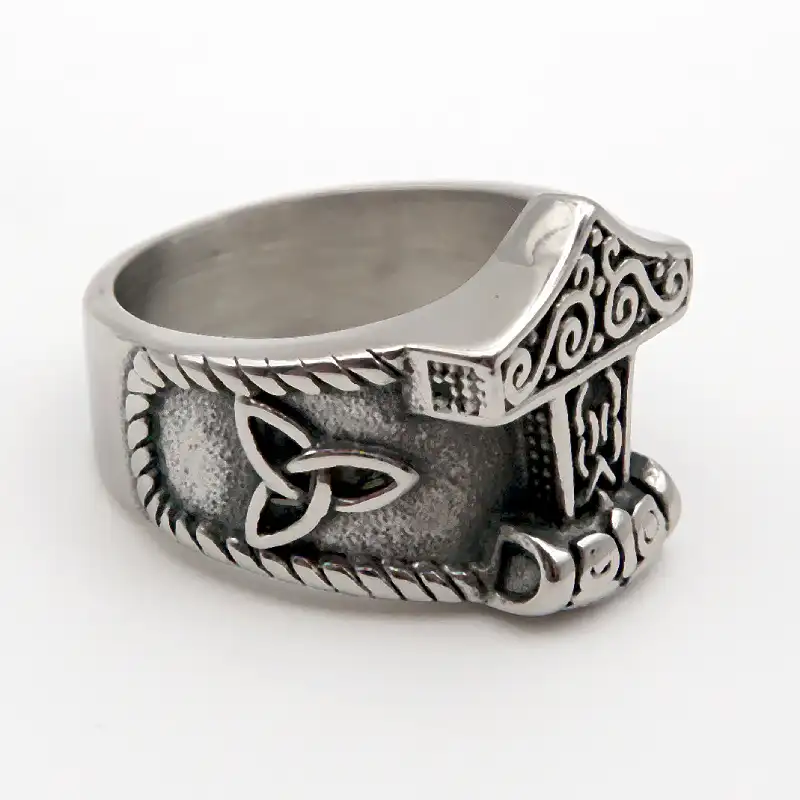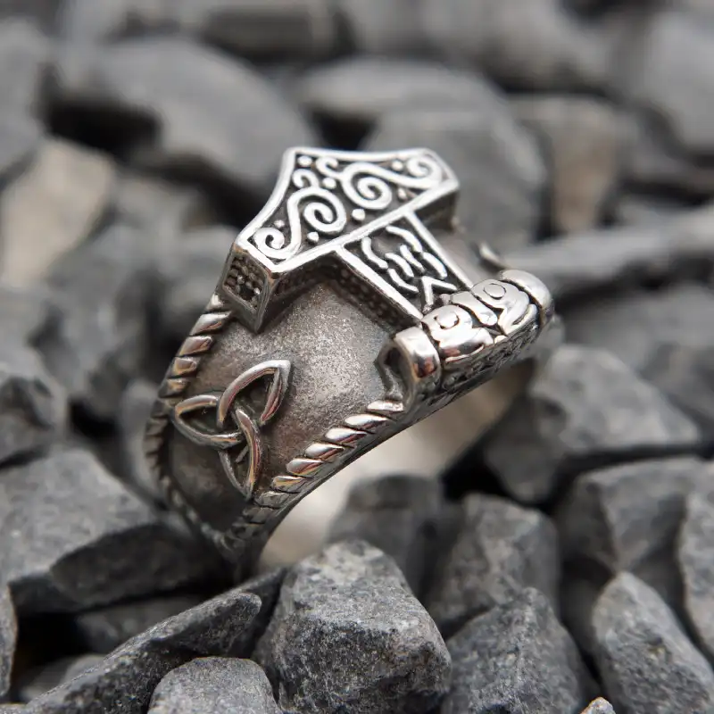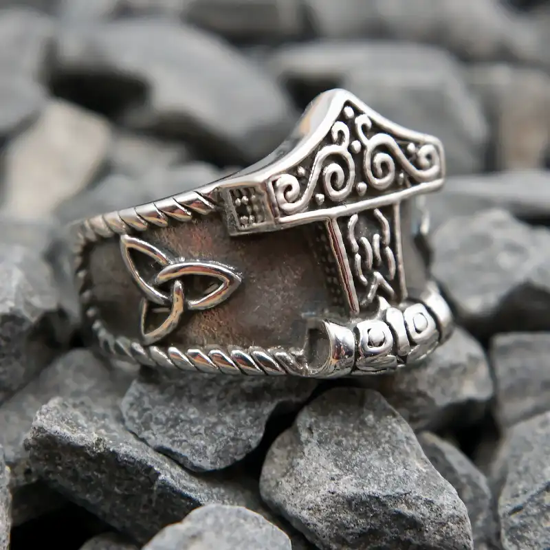 Anillo Vikingo de Acero Inoxidable con Mjölnir y Triqueta: Símbolo de Fuerza, Protección y Equilibrio