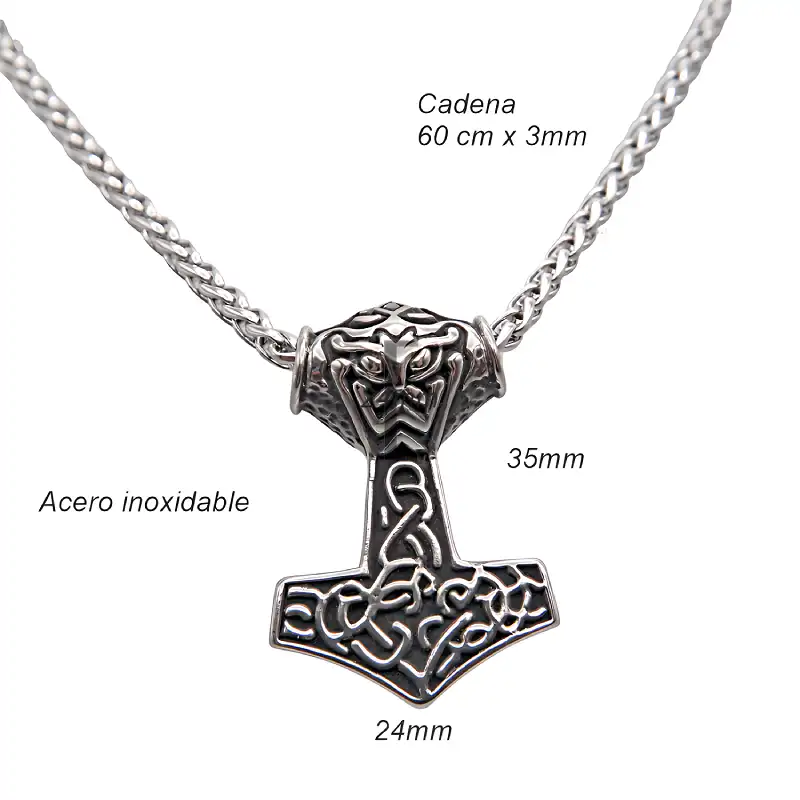 Conecta con la fuerza vikinga con nuestro colgante del Martillo de Thor. Forjado en acero inoxidable y adornado con símbolos nórdicos grabados, este amuleto te brindará protección y poder. Cadena de acero incluida.