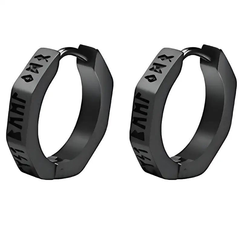 Pendientes vikingos de acero inoxidable esmaltados a fuego y grabados con runas nórdicas. Un accesorio único y resistente que aportará un toque de misterio y fuerza a tu estilo.