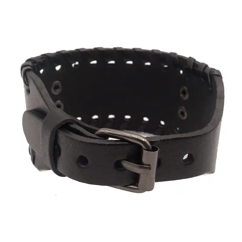 Material: Cuero. Pieza central de zamak. remaches en acero.